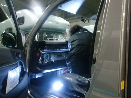 アネックス徳島工場から届いたキャンピングカーに最終の仕上げ作業をしています。