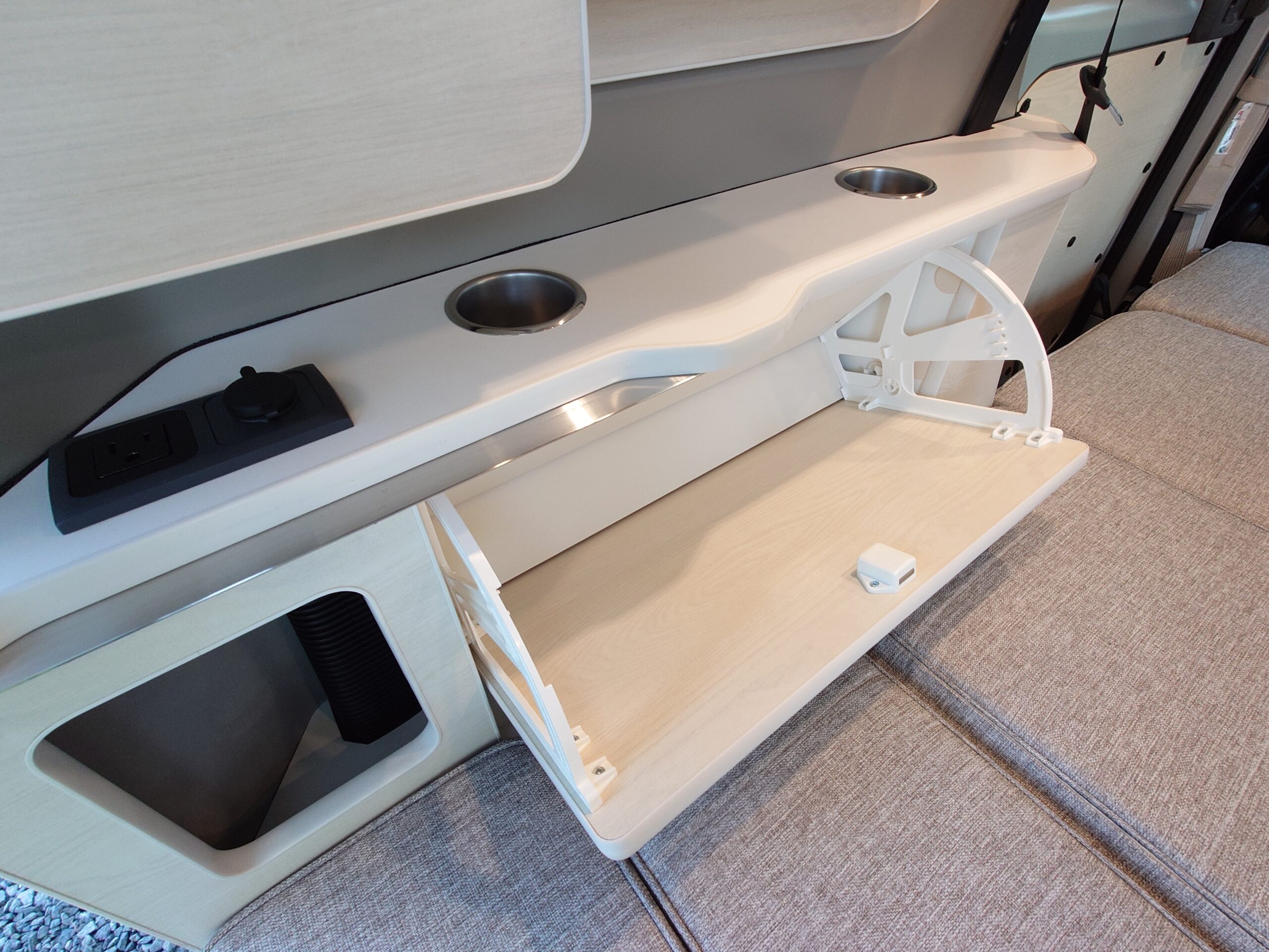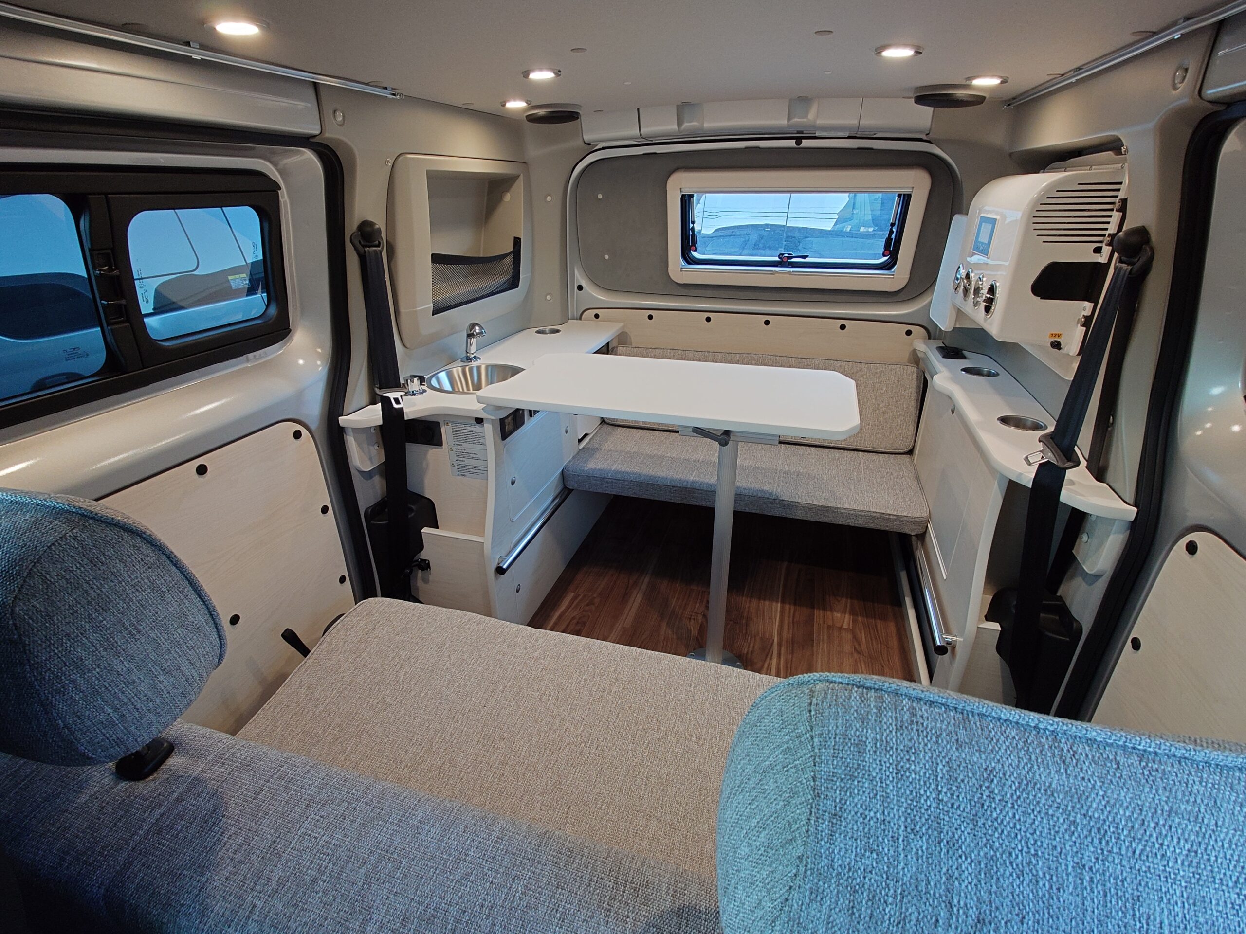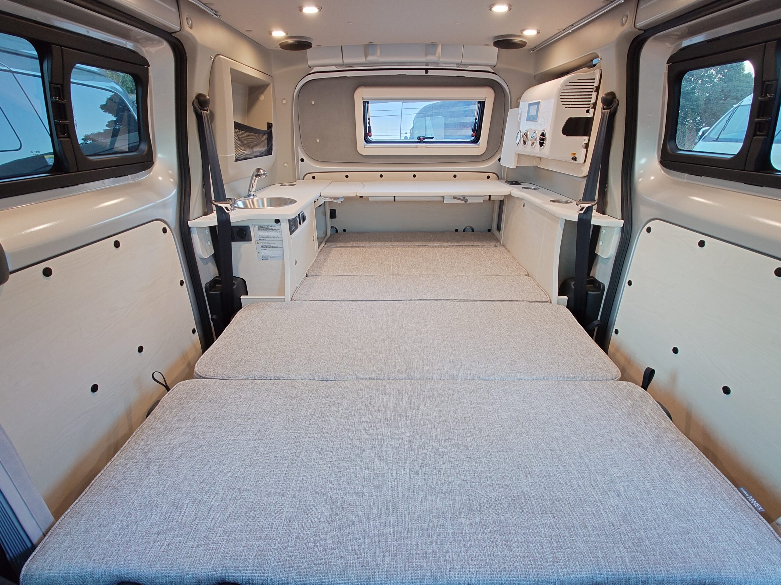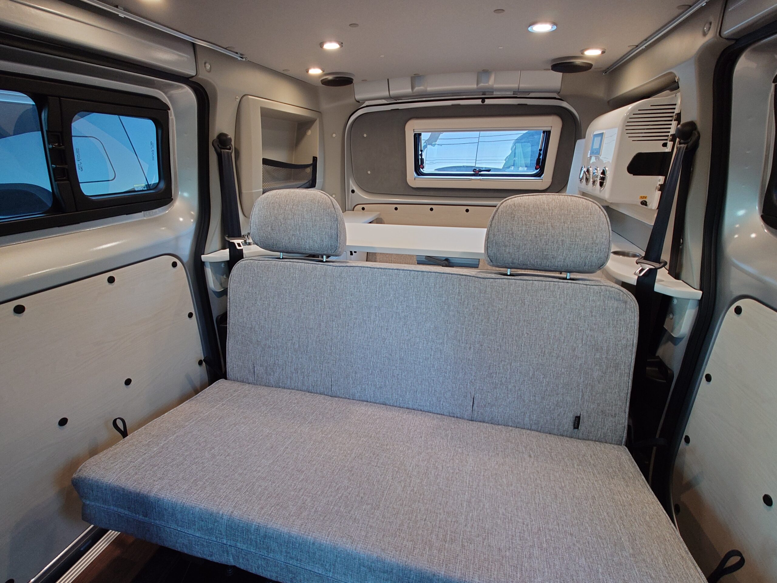 リアアクリルウインドウ、カーテン8面、外部電源(10A)+100Vコンセント、ファミリーワゴンSS専用ユニットシェルフ、リアカーテンレス、スライドドア+リアハッチ(ライト付)トリム