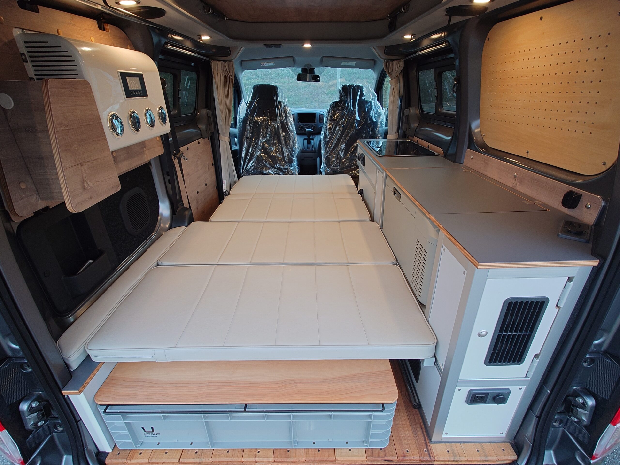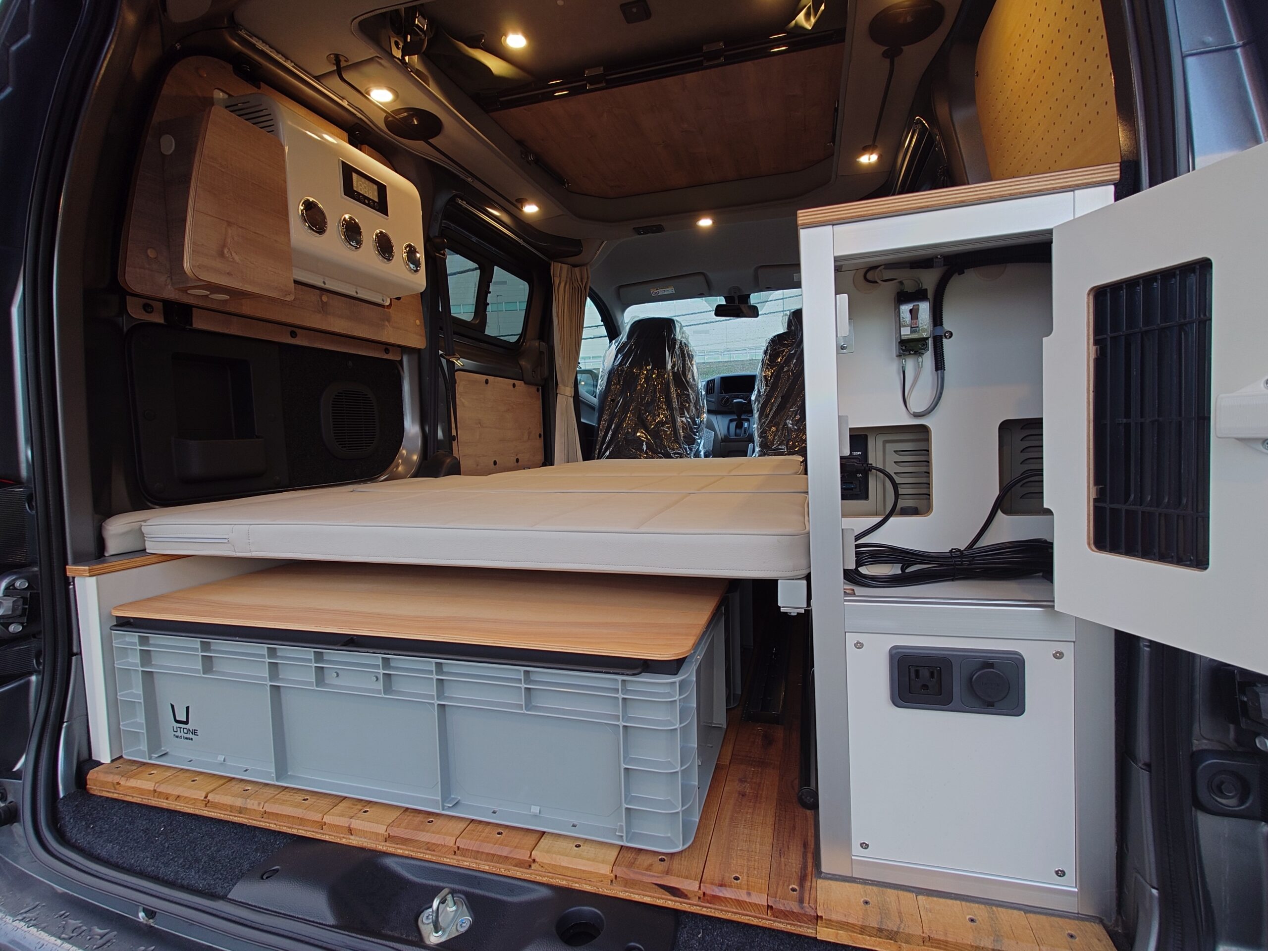 12Vクーラー、リチウムイオンバッテリー100Ah×2、カーテン、リアアクリルウインドウ、有孔ボード