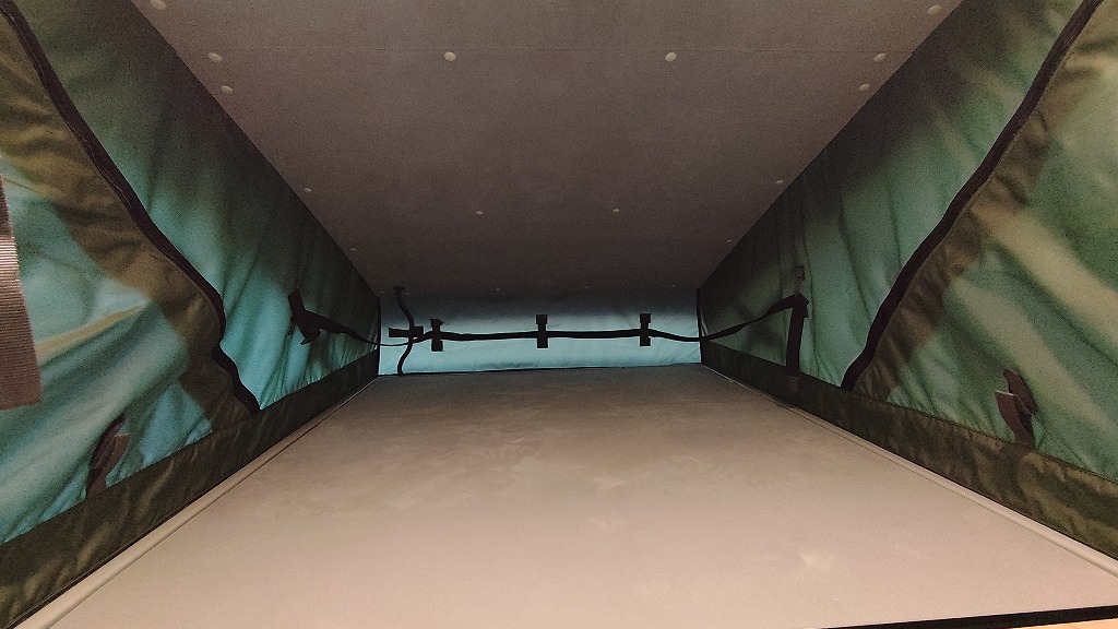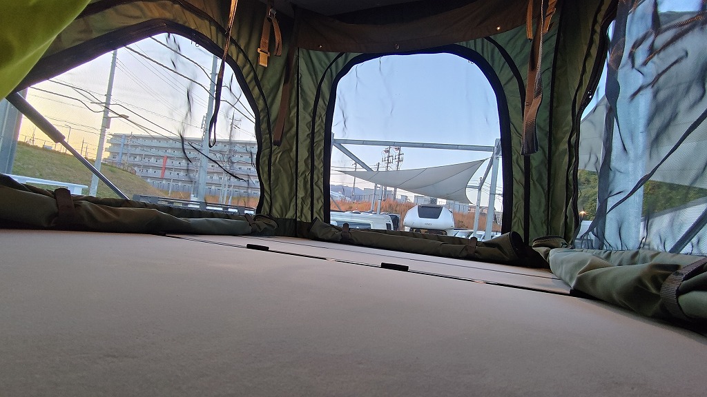 ・エレベーティングルーフを開放すれば居住空間が広がり、室内で立つことができます。